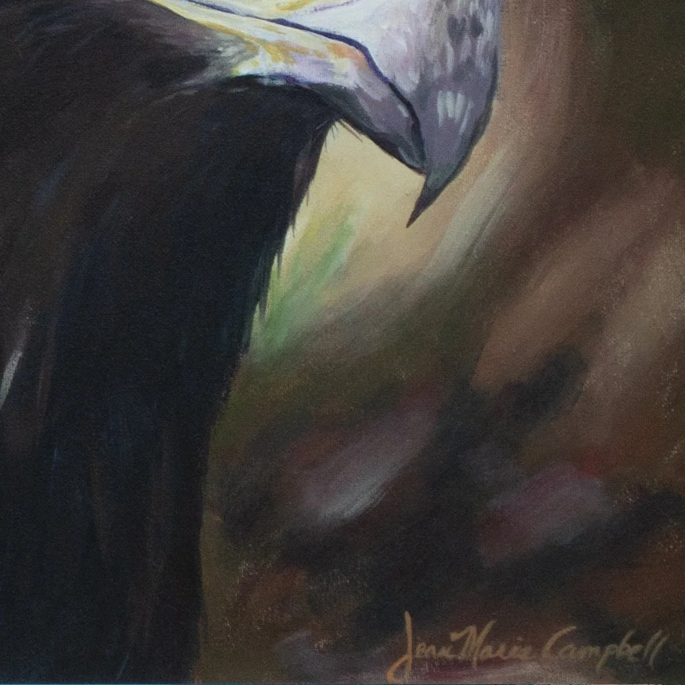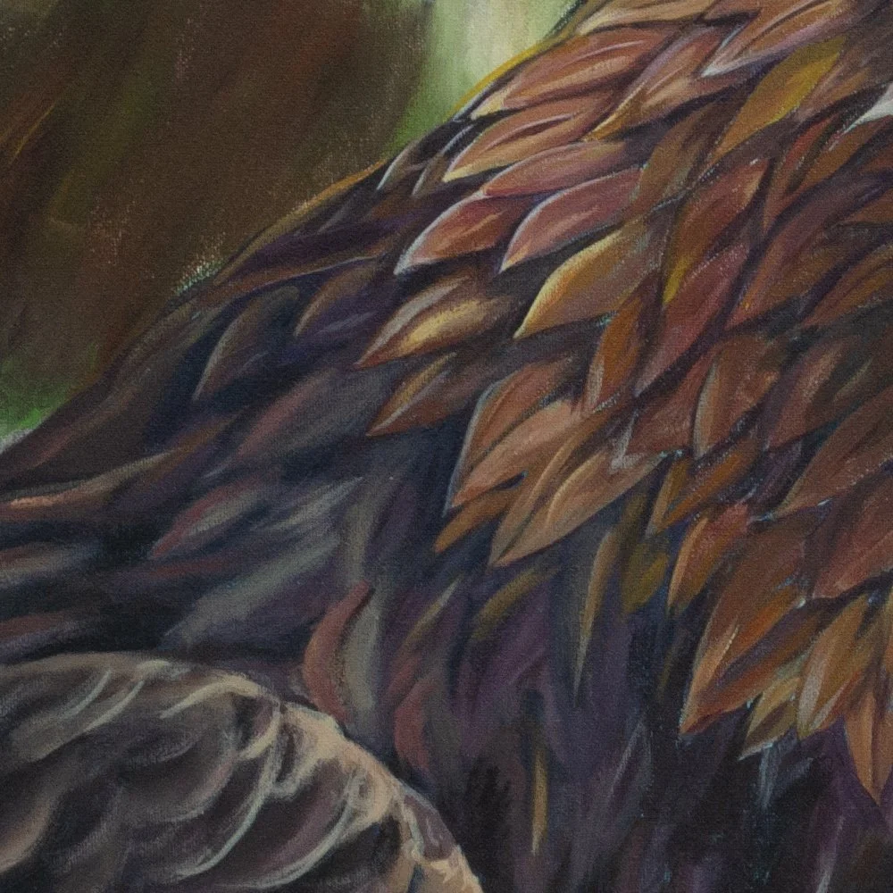 War Damn Eagle Acrylic on Canvas - 16” x 20” Back to Animalia WDE - Detail 1 WDE - Detail 2 WDE - Detail 3 Painted for an Auburn enthusiast, this stately eagle peers out perhaps in search of prey. Back to Animalia